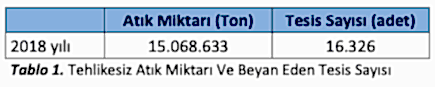 2018 yılında ülke genelinde 16.326 adet tesis tarafından tehlikesiz atık beyan formu doldurulmuştur.